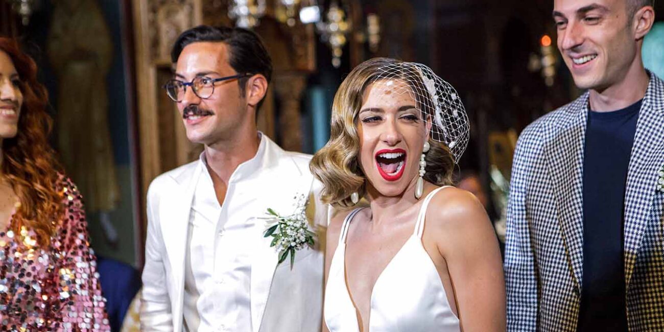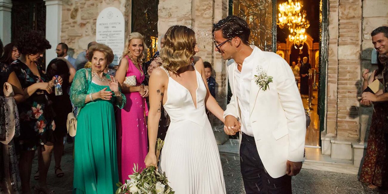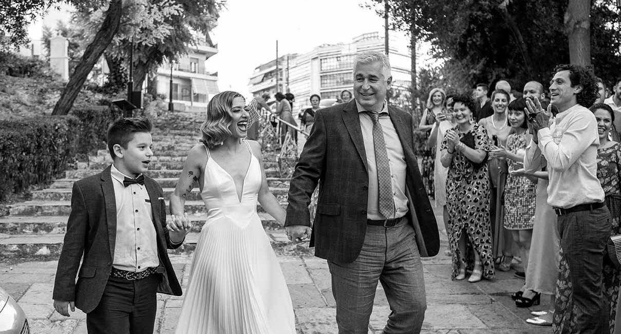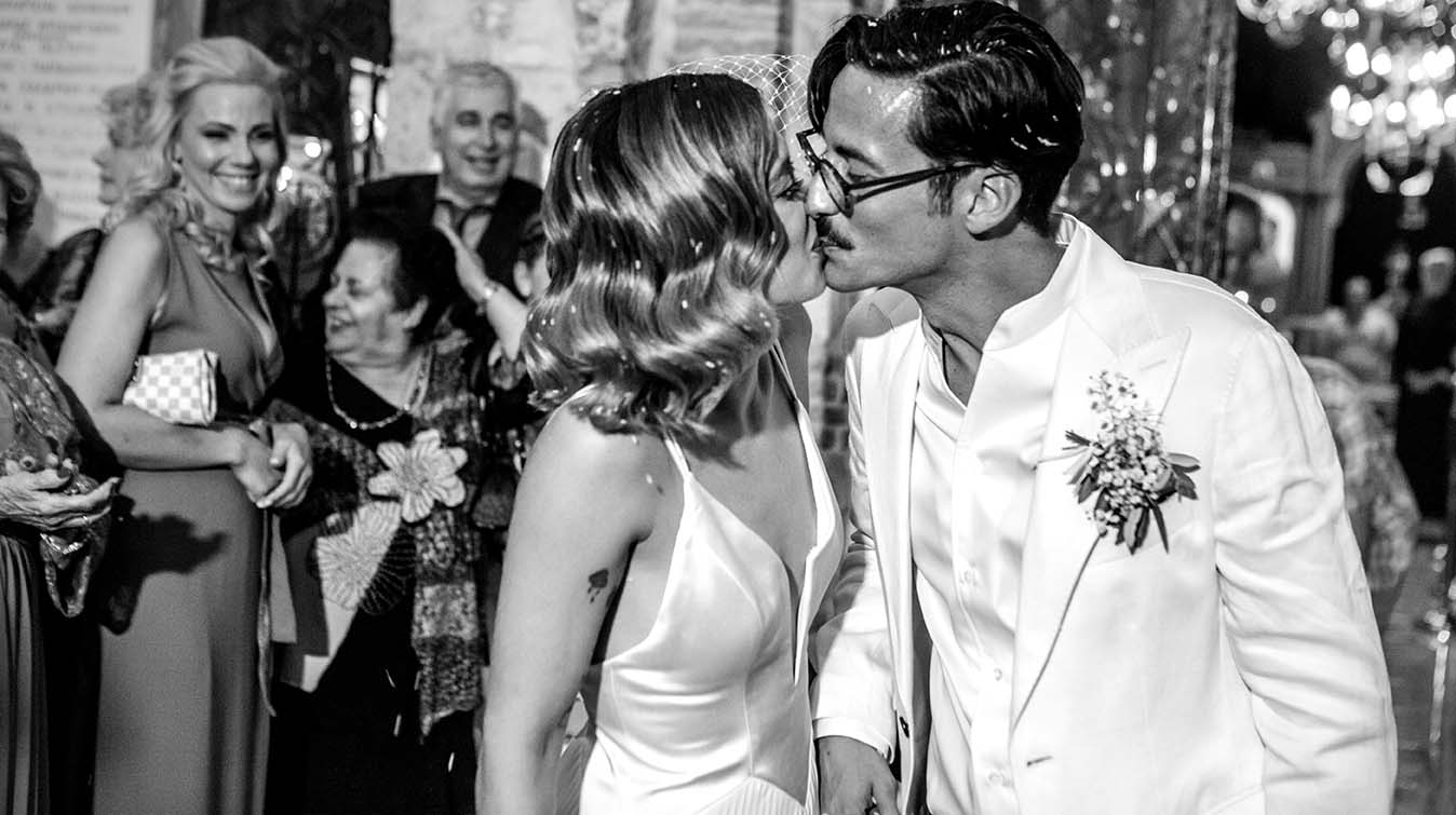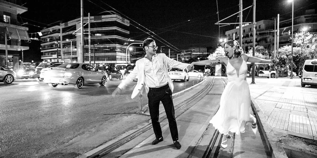 Ένα ζεστό βράδυ του Σεπτέμβρη σε κάποιο μαγαζί στο γκάζι τα βλέμματα τους συναντήθηκαν , χάθηκαν μα δεν ξεχάστηκαν. Ένα μήνα μετά στο πάρτι της Σέβη μια κοινή παρέα ήταν αρκετή για να τους φέρει πάλι κοντά απρόσμενα, και αναπάντεχα. Ο γάμος τους έγινε στο εκκλησάκι Αγίας Φωτεινής στο Μέτς. Ακολούθησε γαμήλιο πάρτι με όλους τους φίλους στο Skayfall bar με ωραία κοκτέλ και μοναδικό σκηνικό Ακρόπολη και Λυκαβηττό.