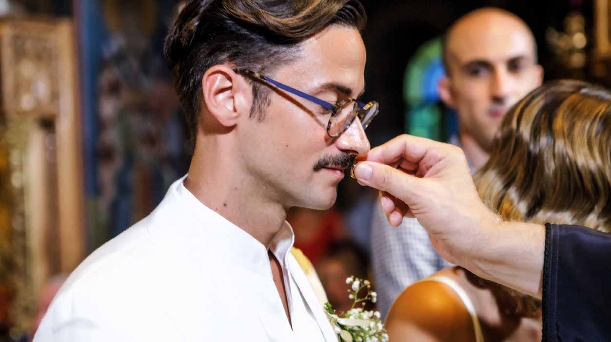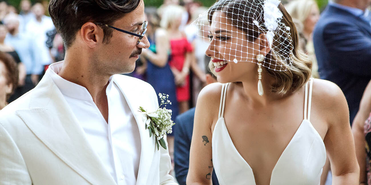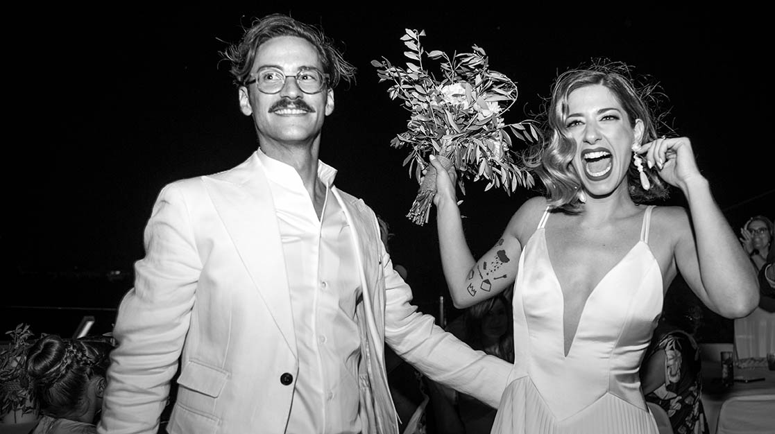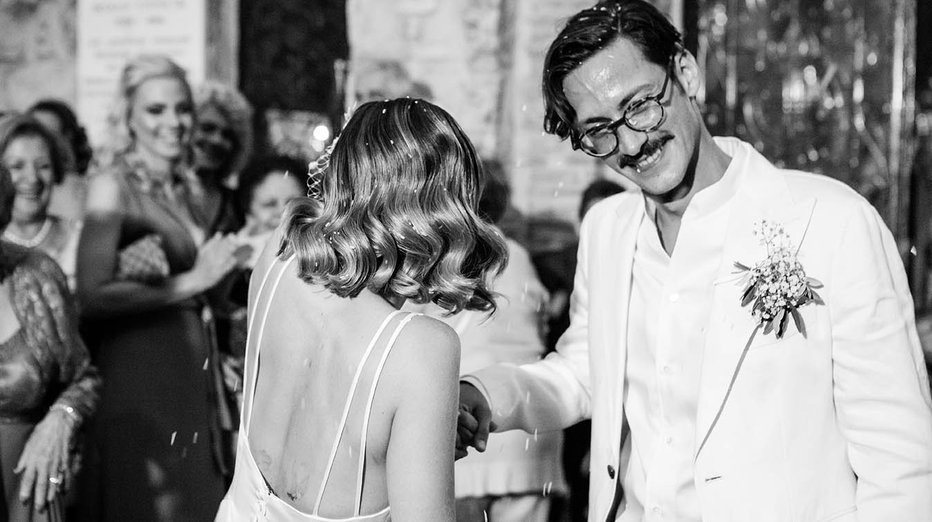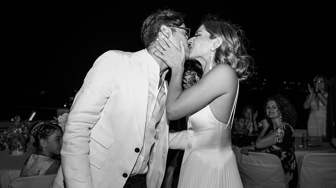 Ένα ζεστό βράδυ του Σεπτέμβρη σε κάποιο μαγαζί στο γκάζι τα βλέμματα τους συναντήθηκαν , χάθηκαν μα δεν ξεχάστηκαν. Ένα μήνα μετά στο πάρτι της Σέβη μια κοινή παρέα ήταν αρκετή για να τους φέρει πάλι κοντά απρόσμενα, και αναπάντεχα. Ο γάμος τους έγινε στο εκκλησάκι Αγίας Φωτεινής στο Μέτς. Ακολούθησε γαμήλιο πάρτι με όλους τους φίλους στο Skayfall bar με ωραία κοκτέλ και μοναδικό σκηνικό Ακρόπολη και Λυκαβηττό.